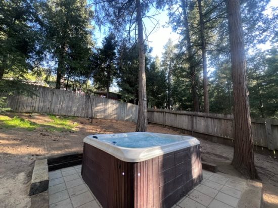 On the elevated front porch, just outside the front door is a sitting area and BBQ grill with great views of the mountains. On the backyard you'll find 2 swings, a hot tub and a hammock nestled between the pine trees.