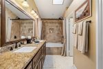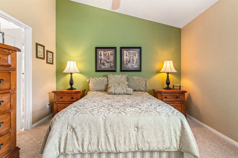 The primary bedroom features a comfortable king-size bed, ensuite bathroom, and direct patio access. The second bedroom offers a cozy queen bed and easy access to the second full bathroom, making this home perfect for families, couples, or friends traveling together.