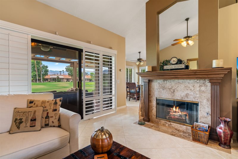 This single-story home is located right on the 2nd hole of the resort’s lush public golf course, giving you unobstructed views of rolling greens, mature palms, and striking mountain backdrops. Start your mornings sipping coffee on the private patio while watching golfers tee off, and end your evenings with a sunset cocktail as the desert sky lights up in warm hues.