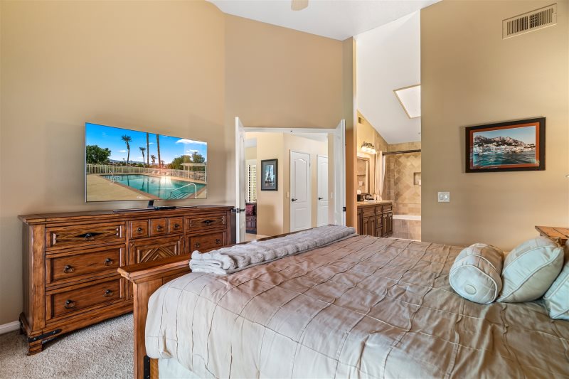 Guests have access to the full range of resort-style amenities that make Palm Desert Resorter such a special destination. There are 20 sparkling pools  scattered throughout the community, with the nearest one just a short walk from the home. The public 18 hole championship golf course is beautifully maintained and open to guests. Active travelers will love the top-notch tennis, pickleball, and bocce ball courts available within the gated grounds.