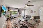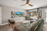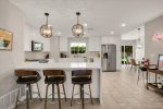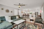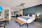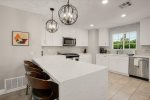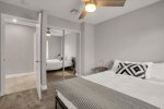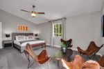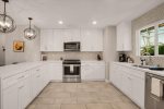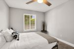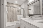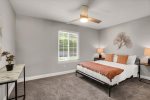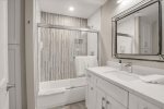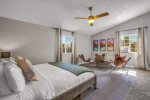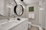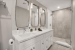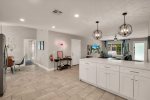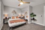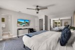 There are 2 spacious master bedrooms w/ king beds. Each with en-suite bathrooms and on opposite sides of the house. 2 additional bedrooms w/ queen beds share a hallway bathroom. The living space ties right into your kitchen and dining space for and easy and comfortable flow.