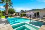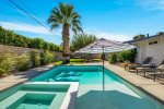 Newly remodeled pool home will welcome you to the desert with its fresh look and airy feel. Updated kitchen, pool, and spa are guaranteed to delight. 4BD/3BA with 2 Master Suites will surely satisfy adults looking for a bit of privacy away from the rest of the group (or the kids).