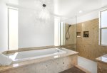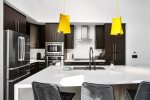 The ideal layout of 1 bathroom per bedroom won't leave guests clamoring for a spot to get ready in the morning. The fully fenced, private backyard is where you will find the BBQ grill, covered sitting area, cornhole, and your own putting green. The pool area features retractable, remote controlled 13ft awnings, misters, a heated saltwater pool/spa and color-changing LED lighting.