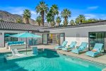 Welcome to an elegant desert sanctuary in one of Palm Springs’ most coveted neighborhoods, where sophisticated design meets effortless indoor-outdoor living. This beautifully redesigned and fully furnished home offers four serene bedrooms, each with its own en suite bathroom, plus a stylish powder room for guests. A private detached casita provides an additional retreat, perfect for hosting friends or family in complete comfort and privacy.