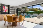 The light-filled open floor plan flows seamlessly through the living, dining, and chef’s kitchen, showcasing refined finishes, a hidden walk-in pantry, and a discreet laundry room that keeps the space feeling polished and uncluttered. Every detail has been thoughtfully curated to create a calm, luxurious atmosphere ideal for both relaxing and entertaining.